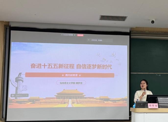 开班仪式结束后,马克思主义学院顾梦佳老师以“奋进‘十五五’新征程 自信逐梦新时代”为主题,为全体学员讲授首堂理论课。